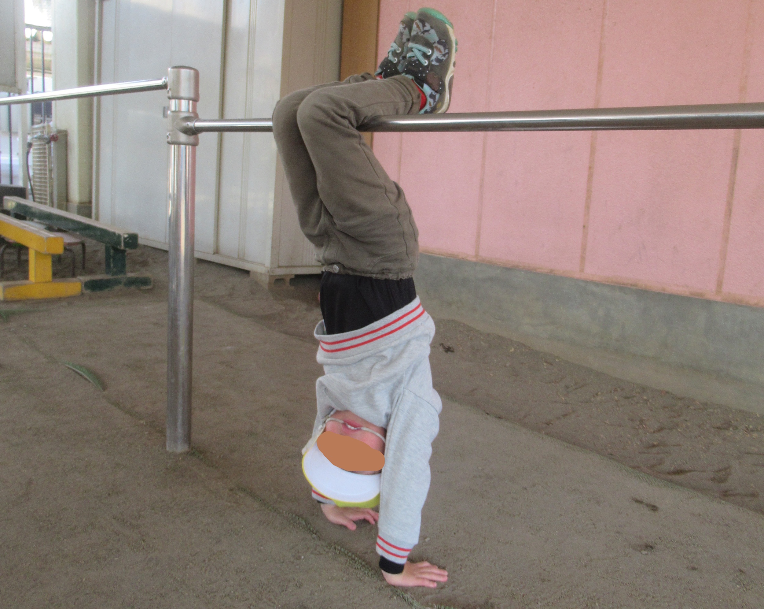 「来て来て~!」「見て見て~!」 子ども達がよく使う言葉ですが、 今日のS君の第一声は「来て来て~!」でした。 手を引っ張られて着いた先は鉄棒。 次の言葉は「見て見て~!」です。 こんな技を披露してくれて、次の言葉は 「写真撮って~!」 は…