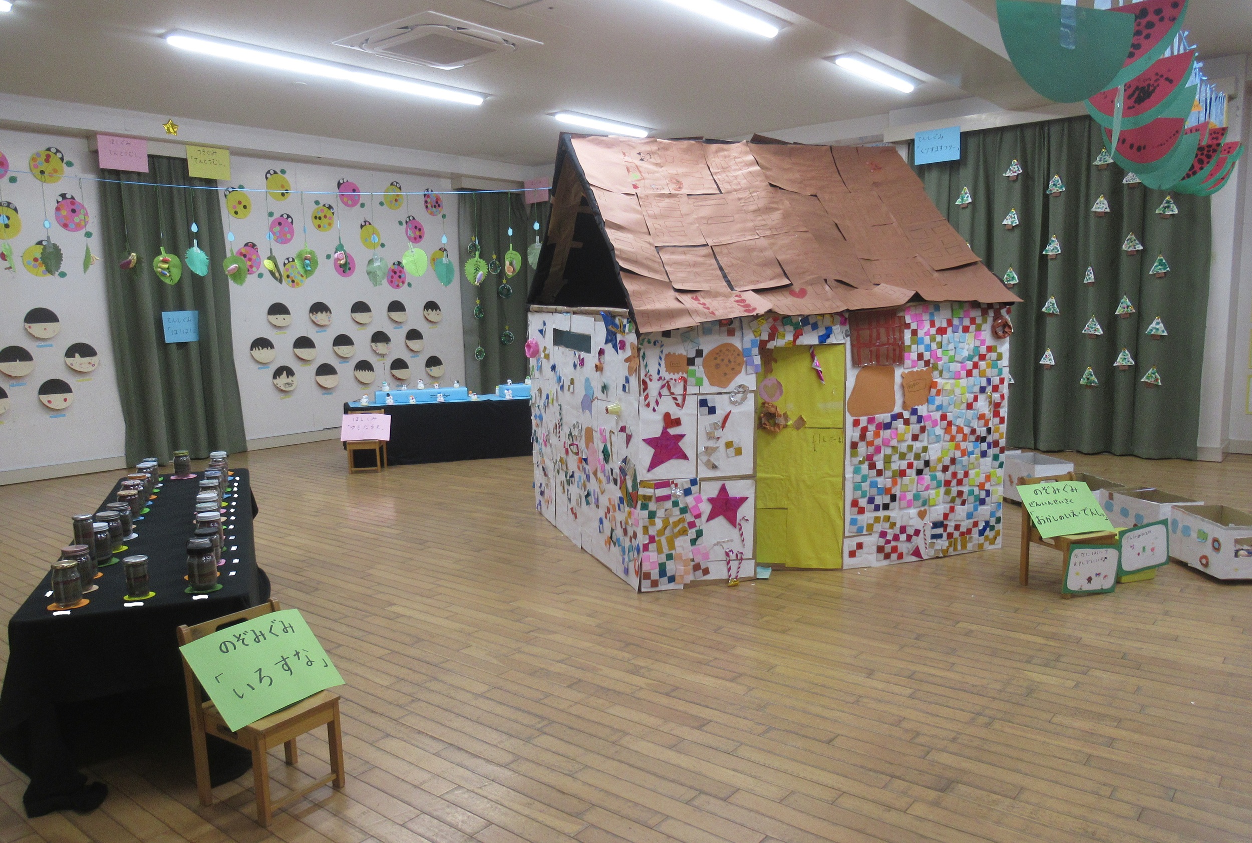 明日から作品展が始まります。 すべての準備が整いました。 子ども達の作品が映えるよう、小さな事に こだわって、先生たちが展示しました。 我ながら、なかなか素敵に仕上がりました。 22日(日)まで公開していますので、 ぜひぜひ見に来てください…