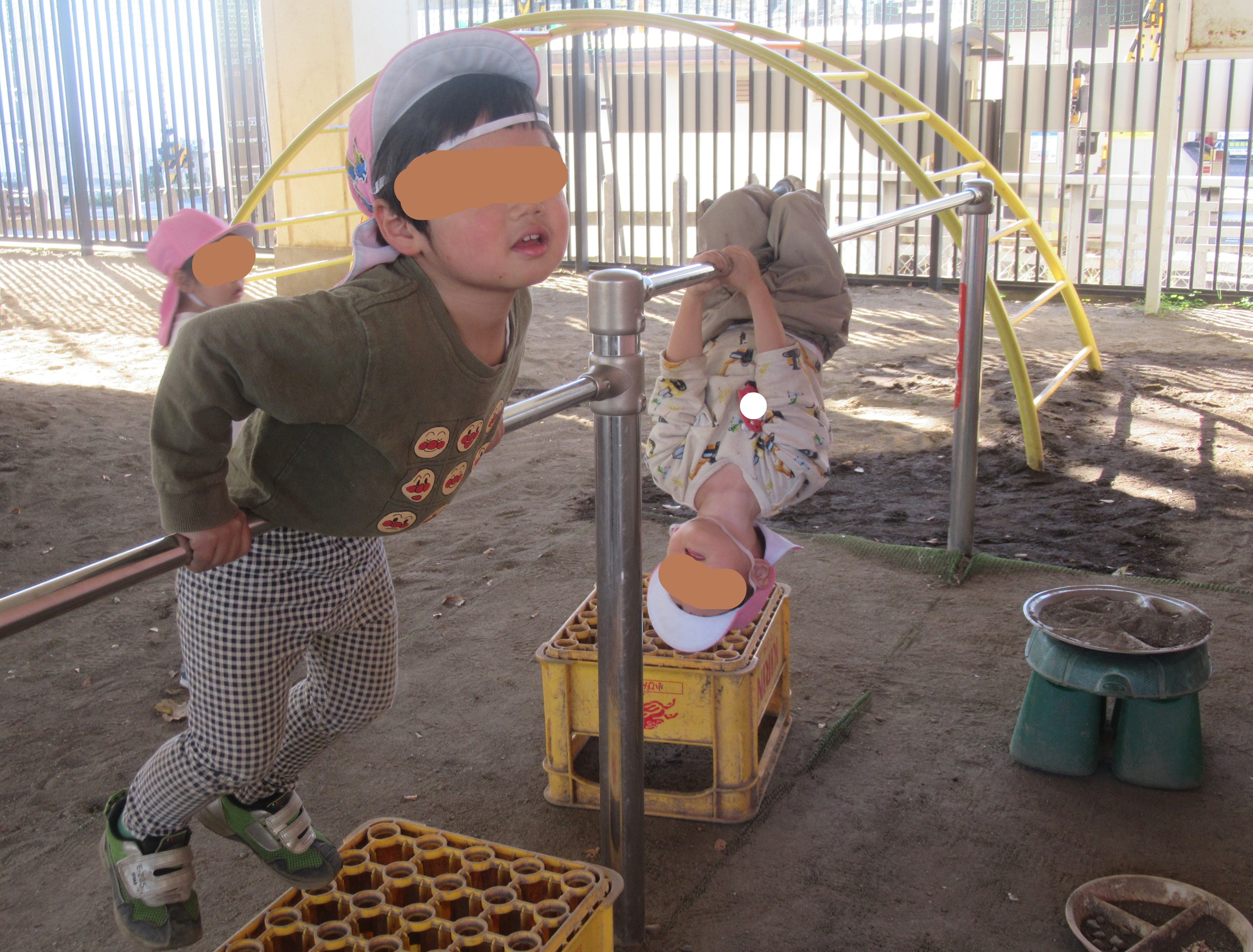 「見て見て~! 写真撮ってぇ~!」 そう言って手を引っ張る、のぞみ組の人たち。 「凄~い!」「前回り~」「足かけだぁ~」 ワイワイ盛り上がって写真を撮っていると、 ほし組の二人のSくんが、そっと近づいてきました。 声を発することはありませんが、カメラ目線。 無表情なのですが、目が訴えています。 「僕たちだって出来るよ。見ててね。」 そして、無言で鉄棒に手を置きました。 彼らが見せてくれた技は、 『ブタのまる焼き』と『つばめ』です。 「わぉ~、ブタのまる焼きだぁ~! うまいねぇ~。 お、つばめだね...