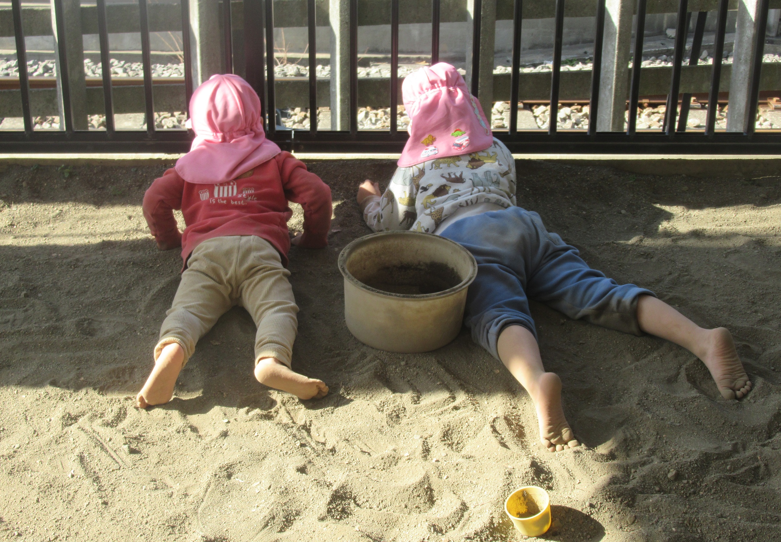 ほし組のSくんとKくん。 いつも一緒の仲良しさん、という訳ではありません。 互いに受け入れられない時もあり、 ぶつかったり、すれ違ったり……。 近づいたり、遠ざかったり……。 でも今日は、ずっと一緒に遊んでいます。 見事に砂まみれ! 笑顔があふれ良い感じ💛 気持ちを言葉で上手く伝える事が難しいこの時期、 こうして心を合わせる経験は大切です。 相手を知る事は、友達の第一歩だからね。(^_^) 並んだ背中が「何か」を語っています。 ふたりの間に「何か」が生まれたんだと思います。 「何...