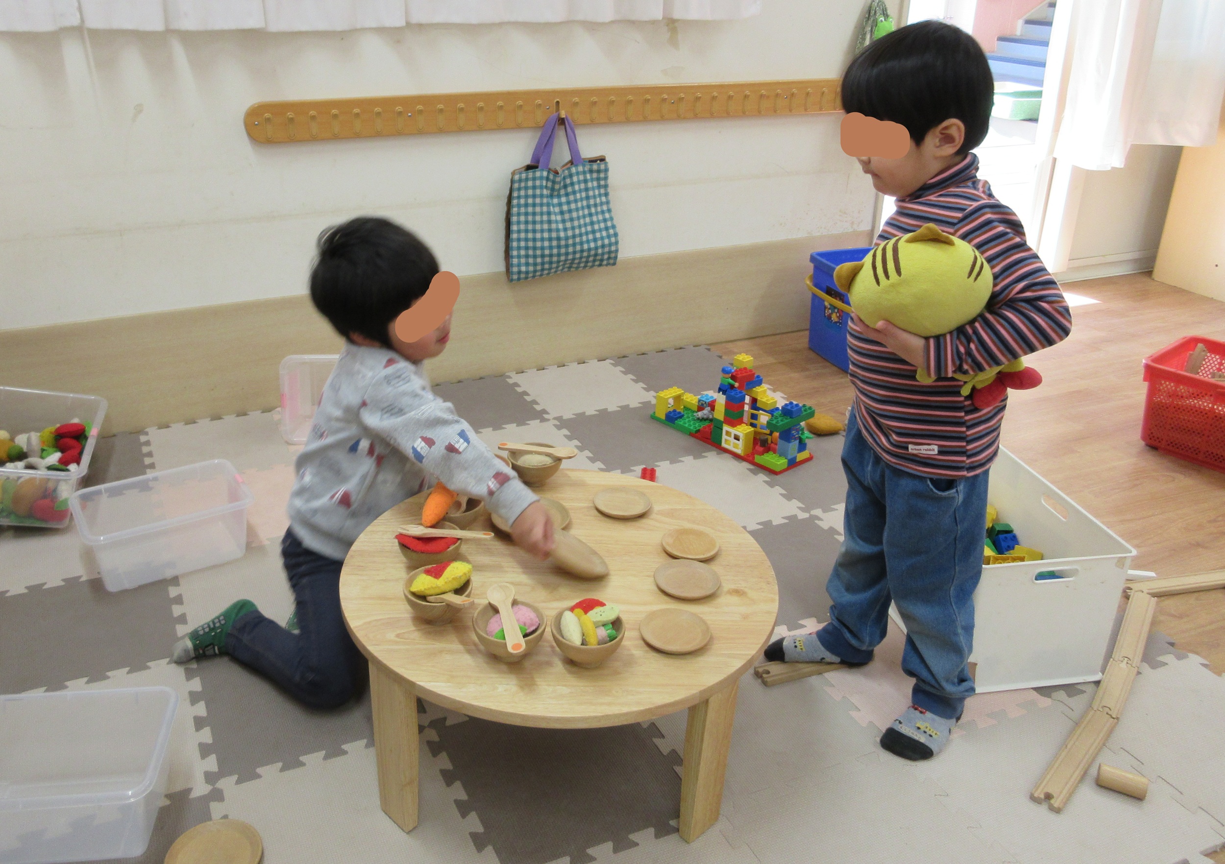 3月に卒園するのぞみ組さんから 卒園記念品をいただきました。 各クラスのままごとテーブルです。 ほし・つき・てんし・のぞみ・こばと 全部で5台も……ありがとうございます💛 全体の集まりで紹介し、クラスに届けた所、 どのクラスの子ども達も大喜びでした。 写真はほし組さん⭐ 普段、ままごとなんてしないs君とw君が 遊んでいます。うれしいもんね。(^_-)-☆ もちろん、他のクラスでも大人気! テーブルを囲んで様々な遊びが広がりました。 年長さんの保護者の皆さん! 本当に...