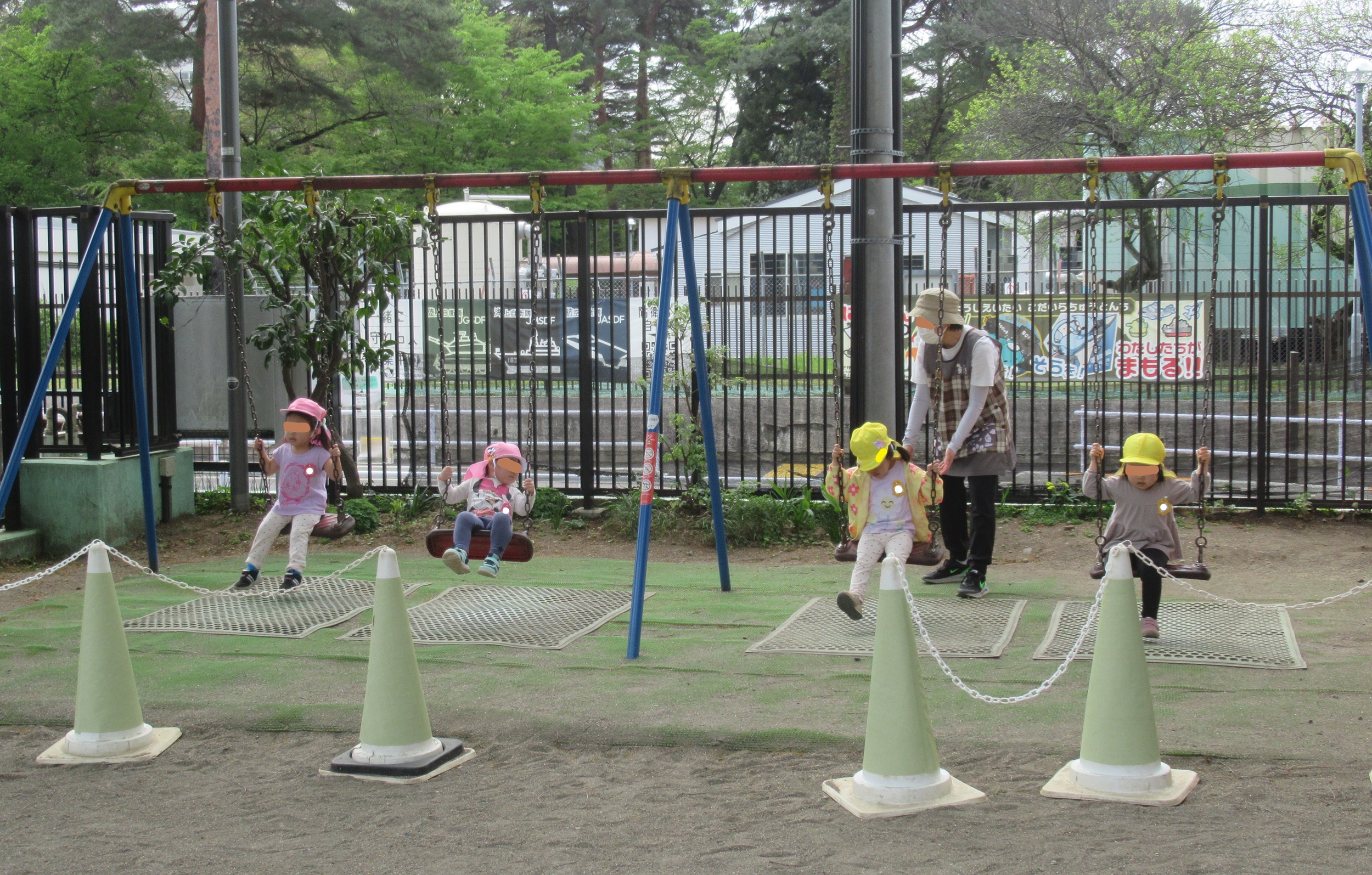 先週入園式を終え、今日から幼稚園生活がスタート はじめてお家の人と離れて過ごしました。 離れ際、涙なみだの大号泣…💦の人もいましたが、 しばらくしたら、遊び始めました。 でも、笑顔に隠された静かな緊張感…… どの人も頑張っています。 ブランコは大人気❣ 「お背中、押そうか?」と声をかけたら、 激しくブンブンと首を振る、ピンク帽子Mちゃん。 まだ背中を押させてはいただけません💦 そりゃ~そうです。 まだここは、彼らにとって心許せる場ではないし 私たちも...