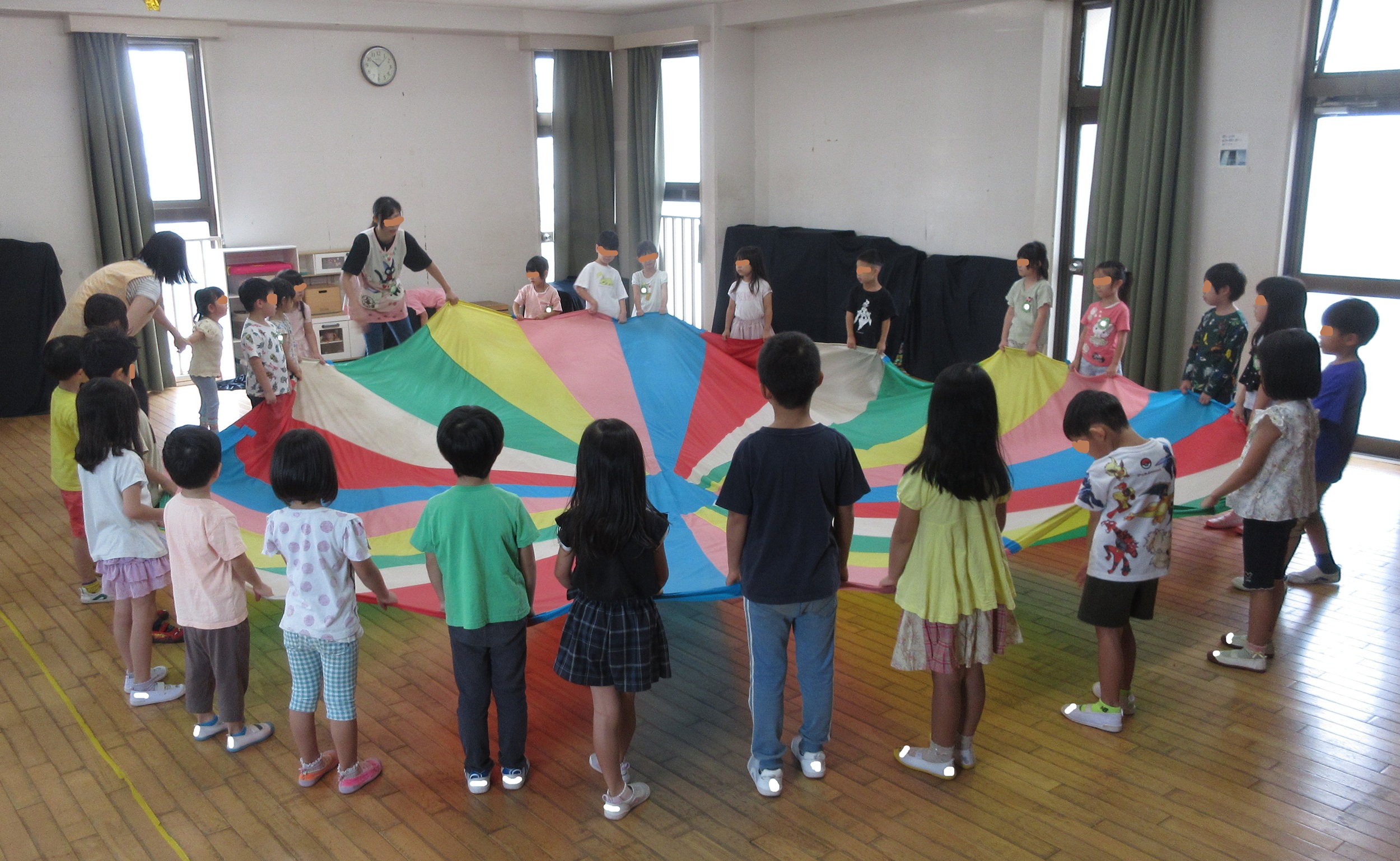 年長のぞみ組がバルーンをやっています。 曲に合わせて振付が始まったので、 みんな、なかなか真剣です。 うまくいった時の感動を知っているので、 ふざける人は、もういません。 ふざける……と言うと語弊がありますね💦 楽しくて嬉しくて、テンションMAX! 盛り上がりすぎちゃう人達がいたのです。 でも、その人達もバルーンの本当の楽しさを知り、 真剣に取り組むようになった…ということです。 バルーンを、同じタイミングで上げたり下げたり みんなの心が一つになると、バルーンと風が 戯れて、いろ...