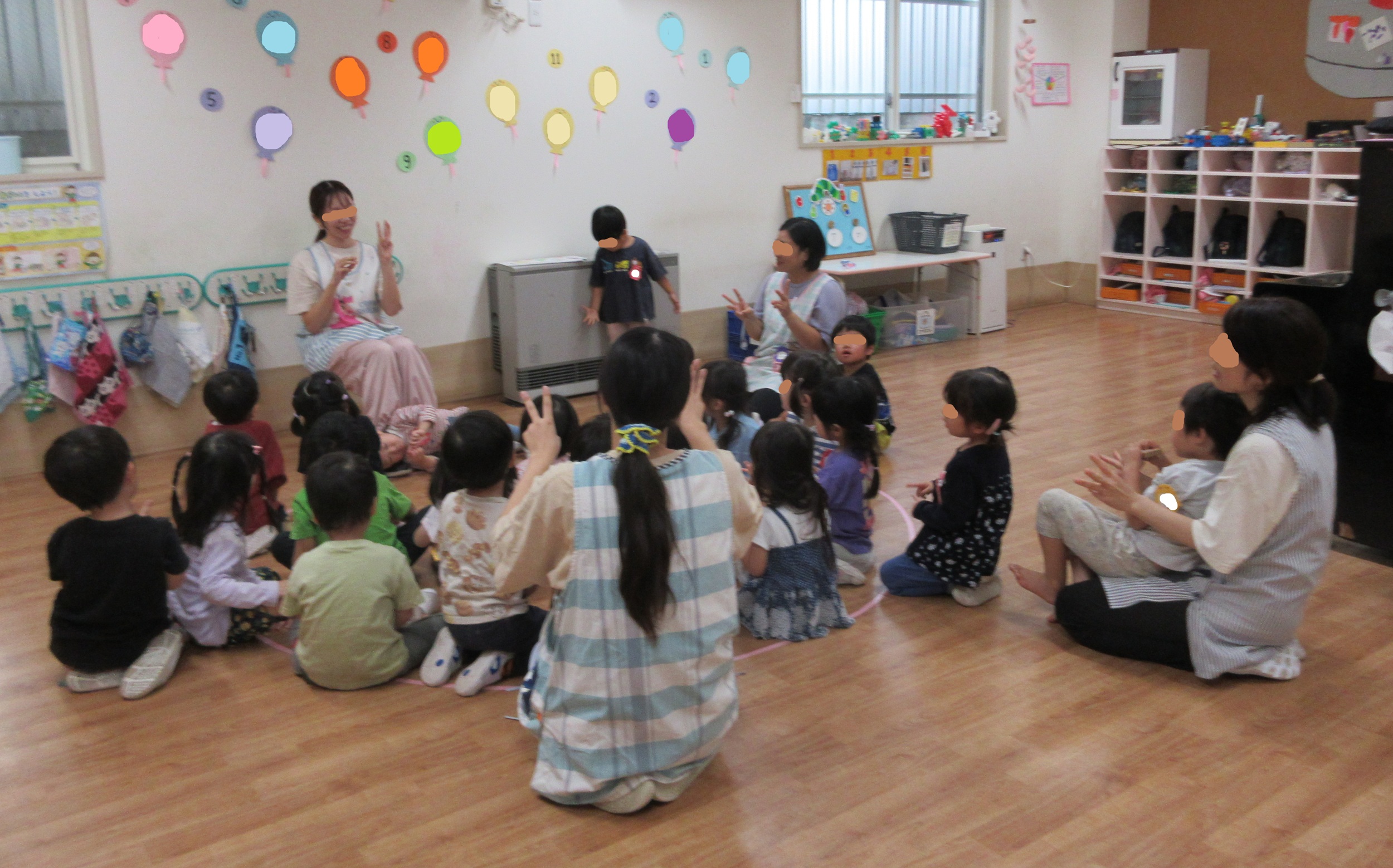 年少の「つき組」と「ほし組」を合わせて、 ひかり組といいます。 本来は1グループの「ひかり組」を2つに分けて 「つき組」「ほし組」と呼んでいるんです。 ですから、運動会に向けての活動はいつも一緒! 今日は、みんなで手遊びを楽しんでいます。 どうやら、プログラムの中に出てくるらしい……。 オリジナルの歌詞で、替え歌のような手遊びです。 運動会当日に、彼らの気持ちを最高潮に導くのが 私たちの仕事であり、目標! (^^) 演じる側がワクワクすることが大切だと思います。 受け身の運動会ではなく、やる気に...