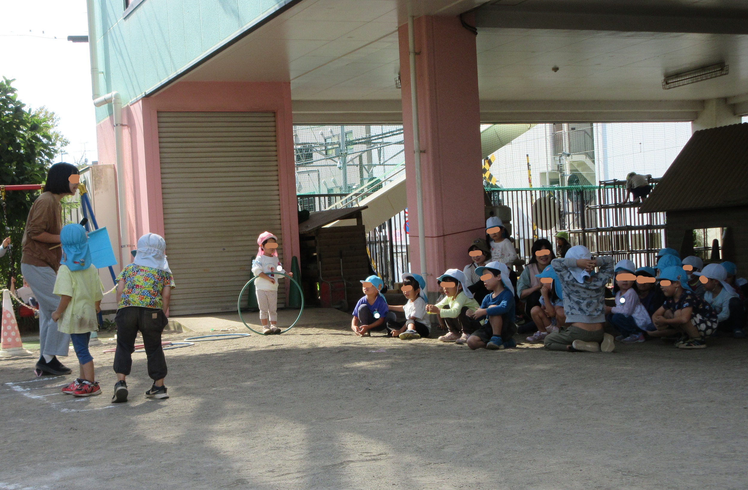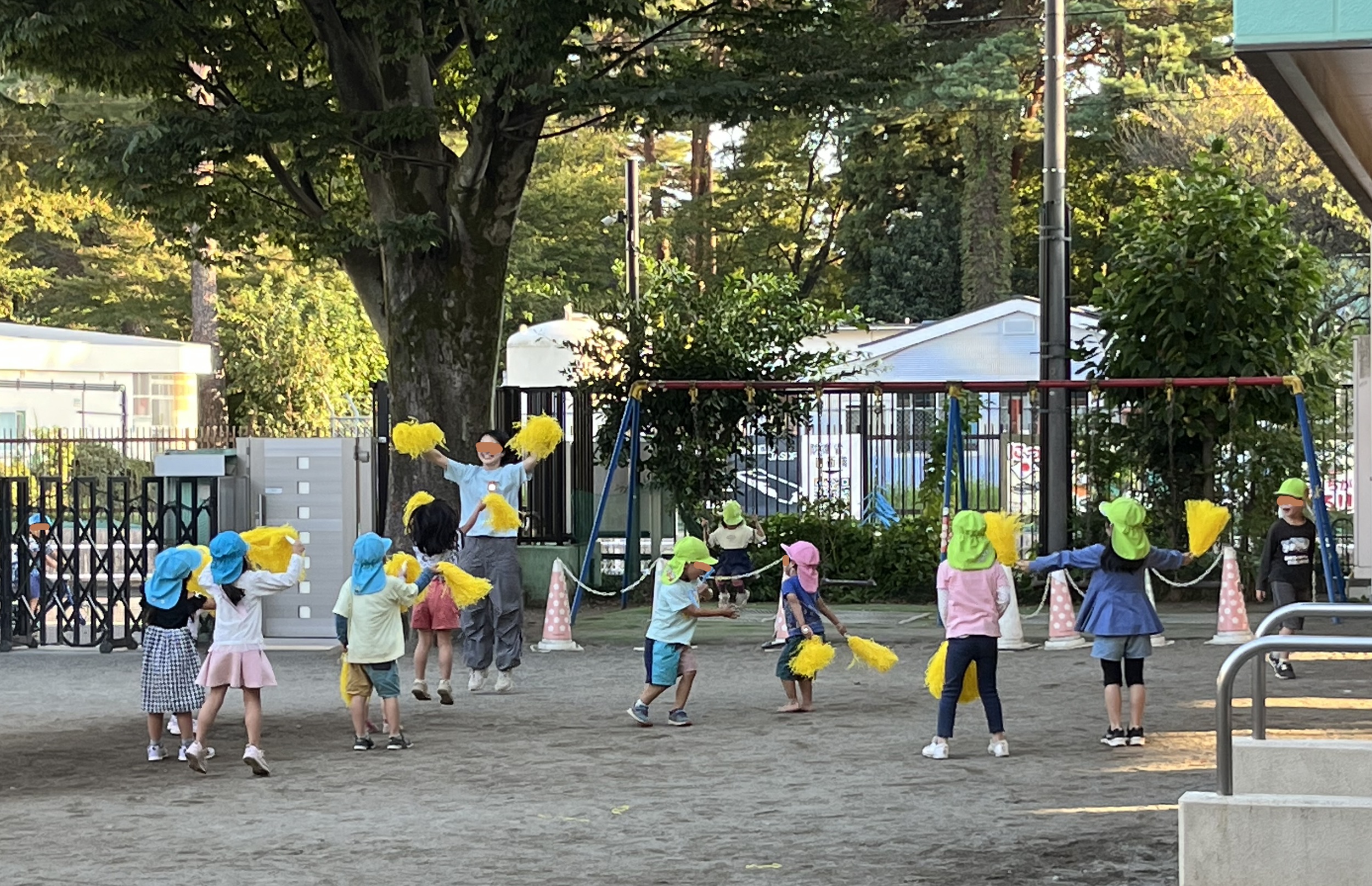 まだ運動会は終わっていないようです。 こばとの時間、園庭に音楽が流れてきました。 曲目は「私の一番かわいいところ」🎵 運動会でお母さんたちが踊ったダンス曲です。 クラスカラーのポンポンを持って、 アイドルのように踊ったお母さんたち💛 子ども達の心に、印象深く届いたようで、 N先生を真似て上手に踊っています。 本番さながら、園庭を移動して踊り、 リズムに乗って、退場していきました。 もう一度アンコールをかけようと思ったら、 男の人たちが「次はグルグルサバイバルだよ!...